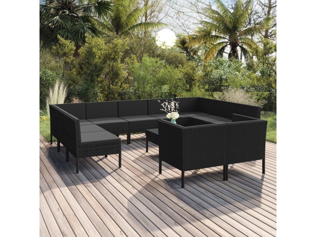 12dílná zahradní sedací souprava s poduškami polyratan černá [3094621]