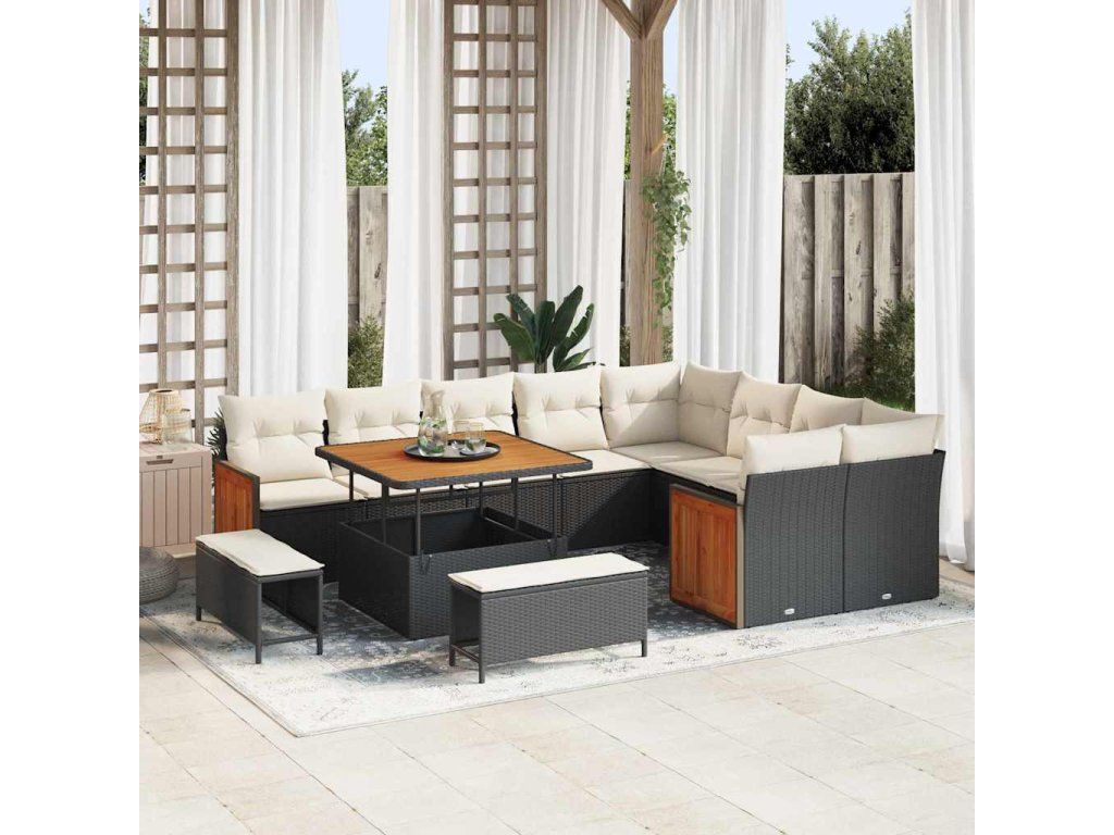 Sada zahradních pohovek 13 pcs Černá a krémová polyratan [3365285]