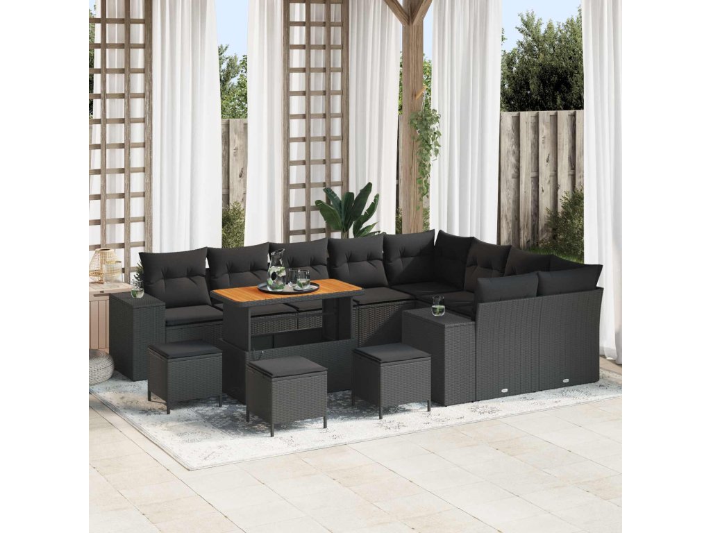 Sada zahradních pohovek s polštářem s úložištěm 13 pcs Černá [3363999]