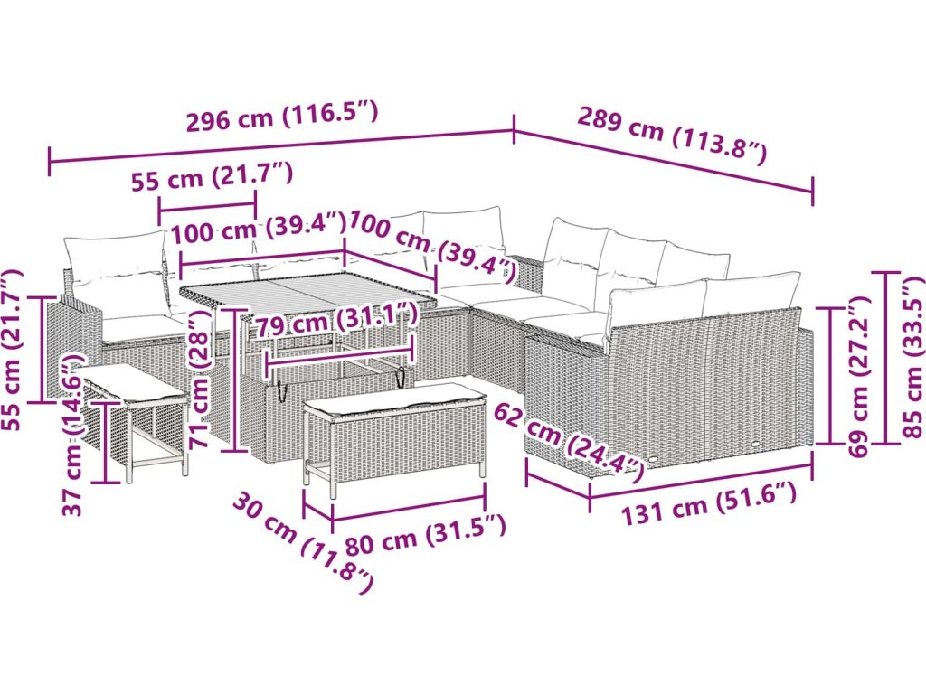 Tento modulární zahradní sofa set je stylovým kouskem pro zahradu nebo terasu. Spojuje moderní design s praktičností, takže je to ideální doplněk do vašeho venkovního prostoru. Díky modulárnímu uspořádání si jej můžete upravit podle potřeby a každé příležitosti. Jeho minimalistický styl dodá vaší terase šmrnc a eleganci.