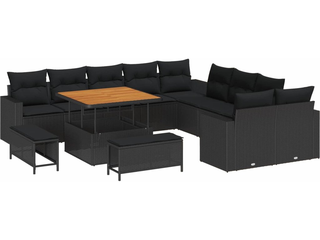 Sada zahradních pohovek s polštářem s úložištěm 13 pcs Černá [3363614]