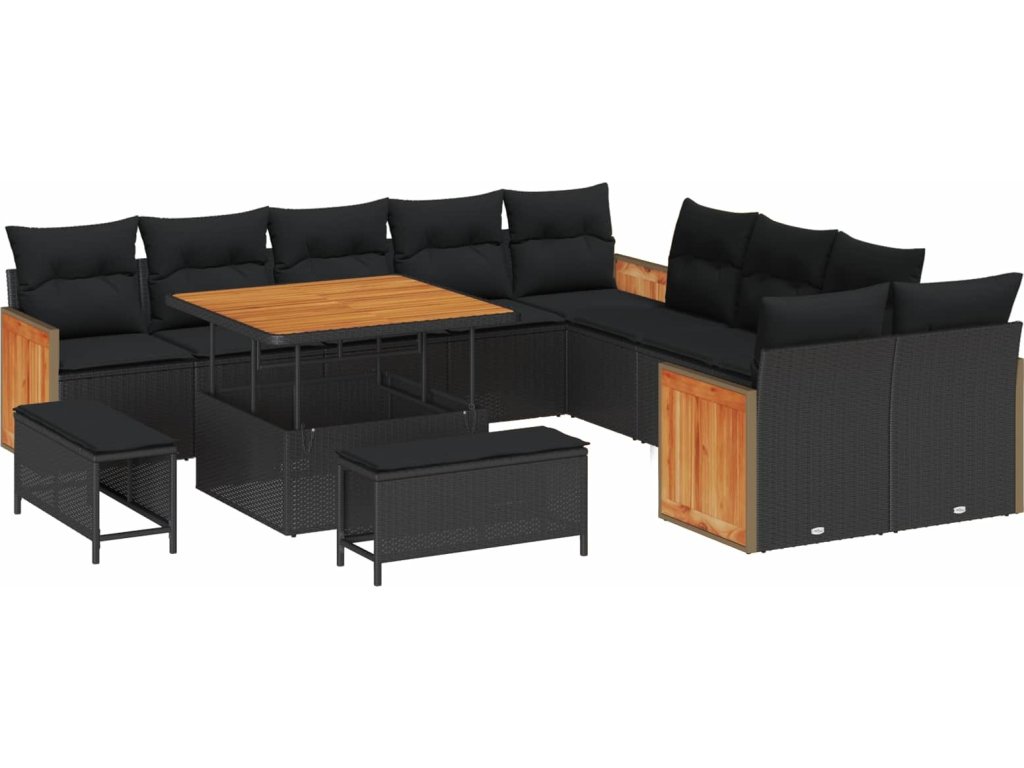 Sada zahradních pohovek s polštářem 13 pcs Černá [3363354]