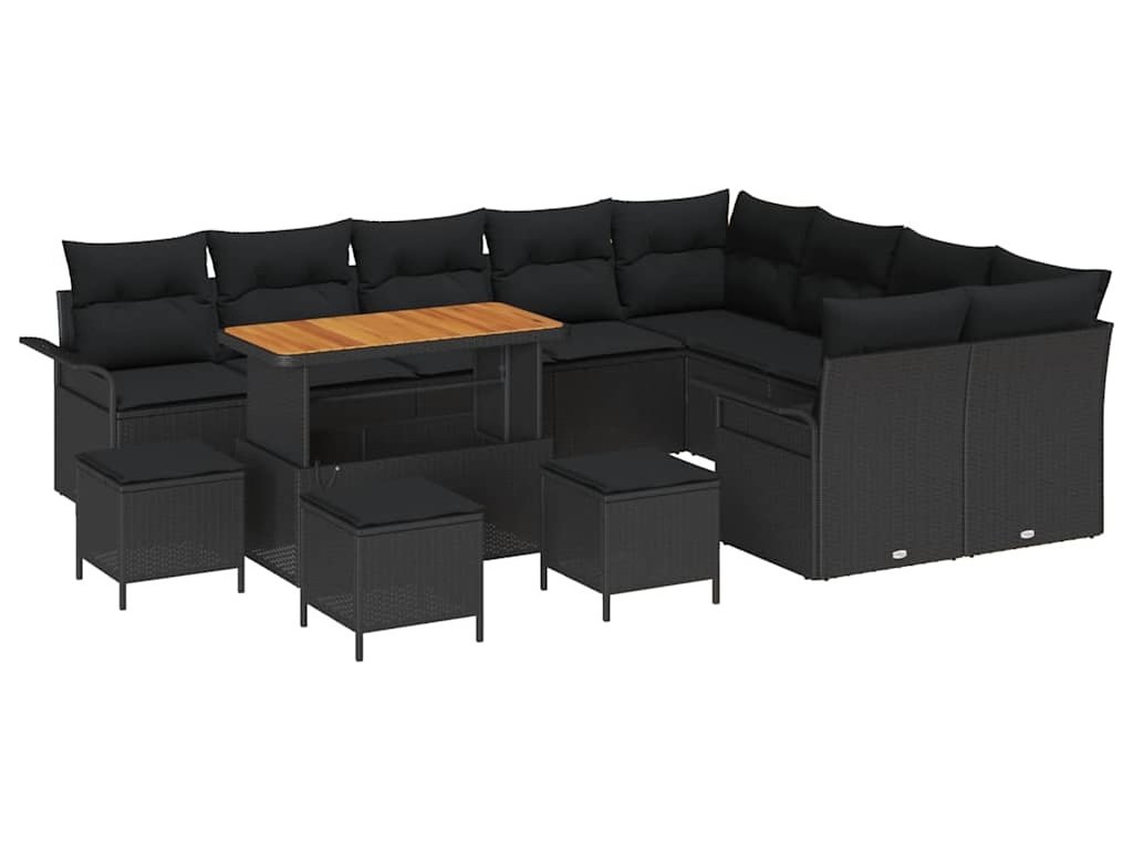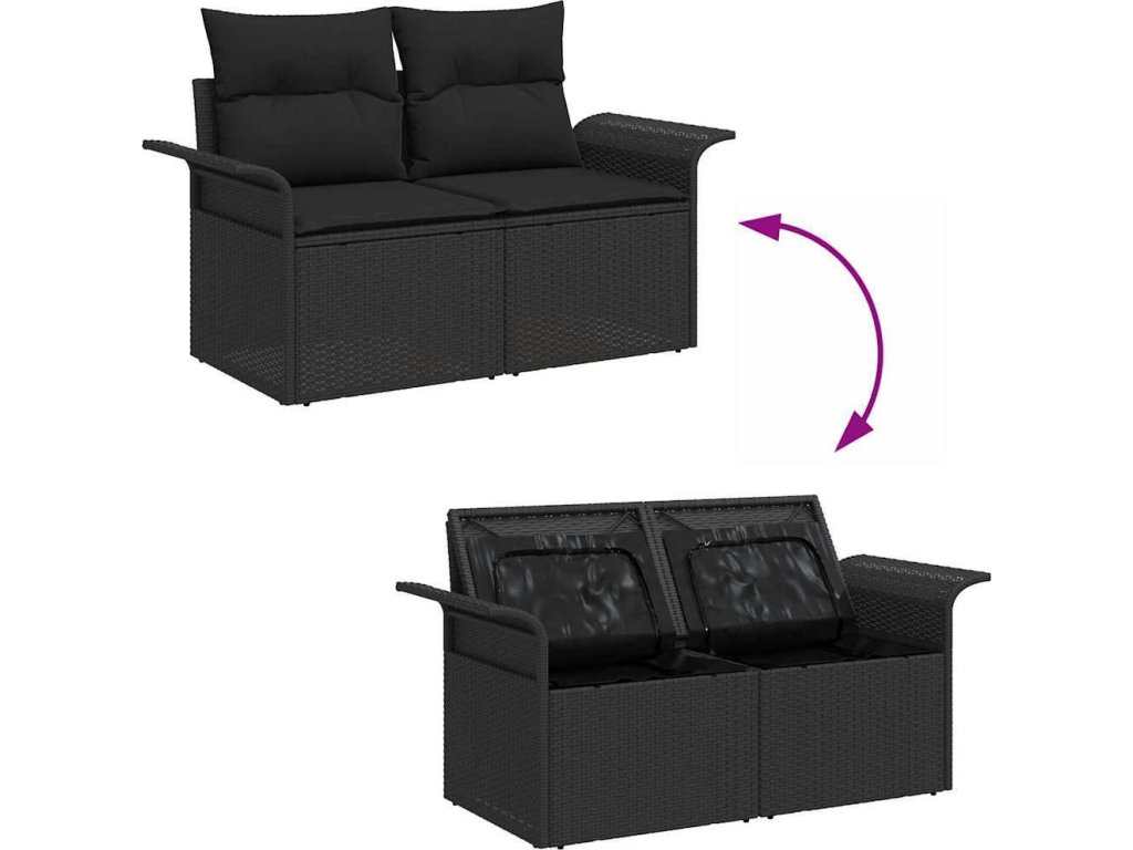 Sada zahradních pohovek s polštářem s úložištěm 13 pcs Černá [3364129]