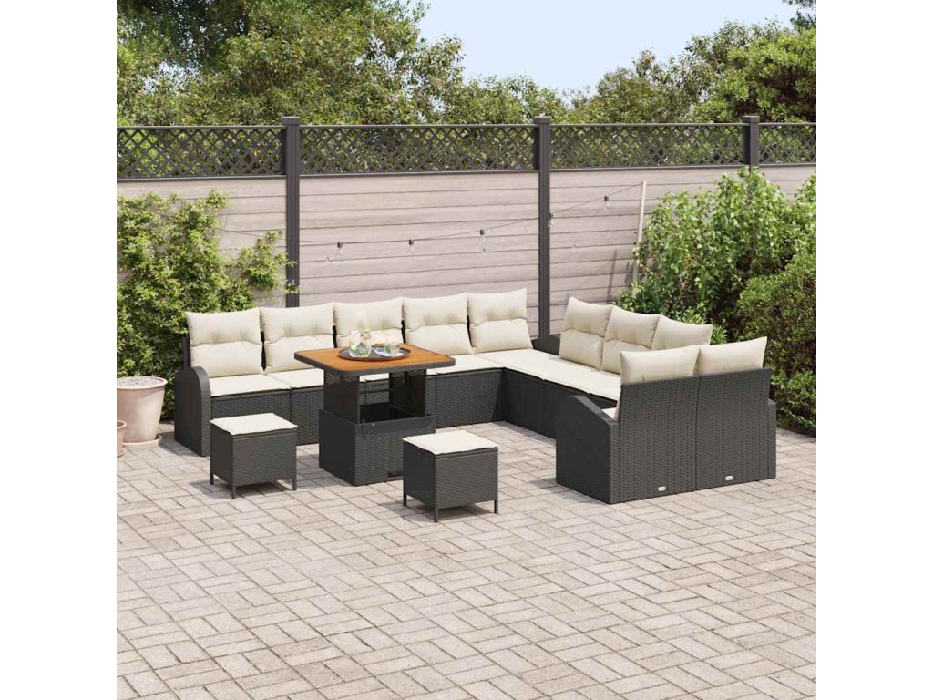 Sada zahradních pohovek s polštářem 13 pcs Černá Poly ratan [3362450]