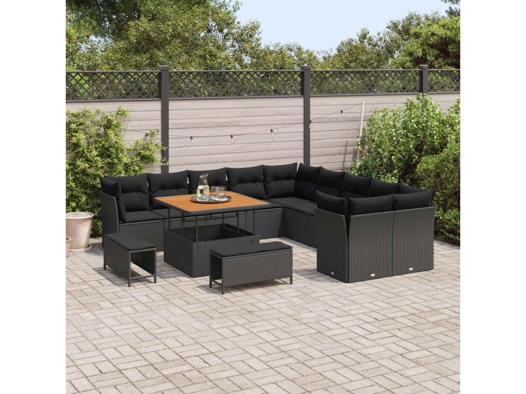 Sada zahradních pohovek s polštářem 13 pcs Černá polyratan [3363484]
