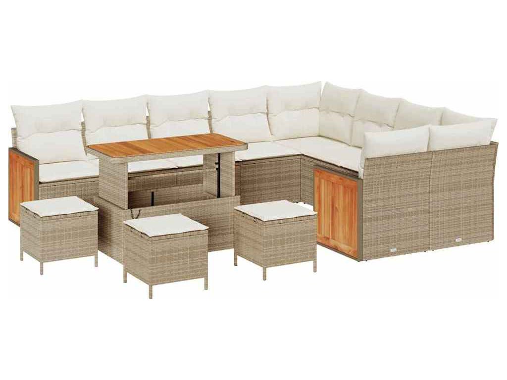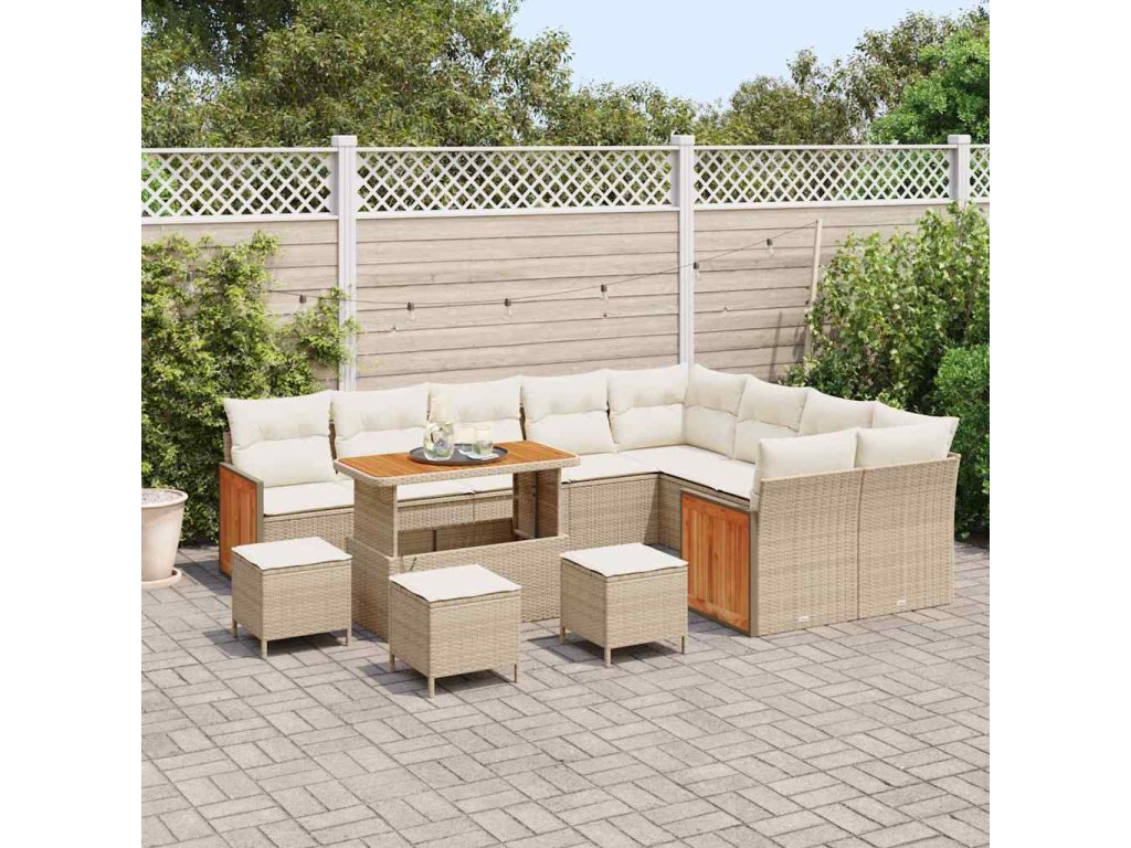 Sada zahradních pohovek 14 pcs Béžová a krémová polyratan [3365301]