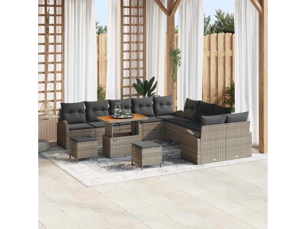 Sada zahradních pohovek s polštářem s úložištěm 13 pcs Šedá [3364408]