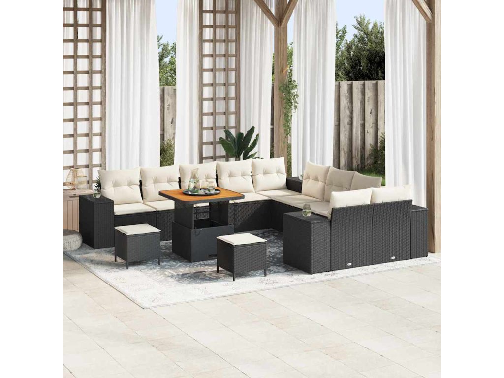 Sada zahradních pohovek 13 pcs Černá a krémová polyratan [3364010]
