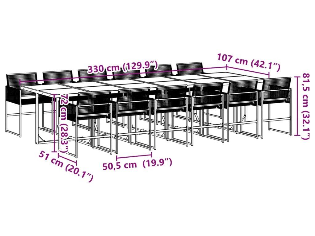 - Robustní a stabilní rám: Ocelový rám s práškovým nástřikem zajišťuje, že zahradní nábytek je pevný a stabilní pro každodenní venkovní použití.