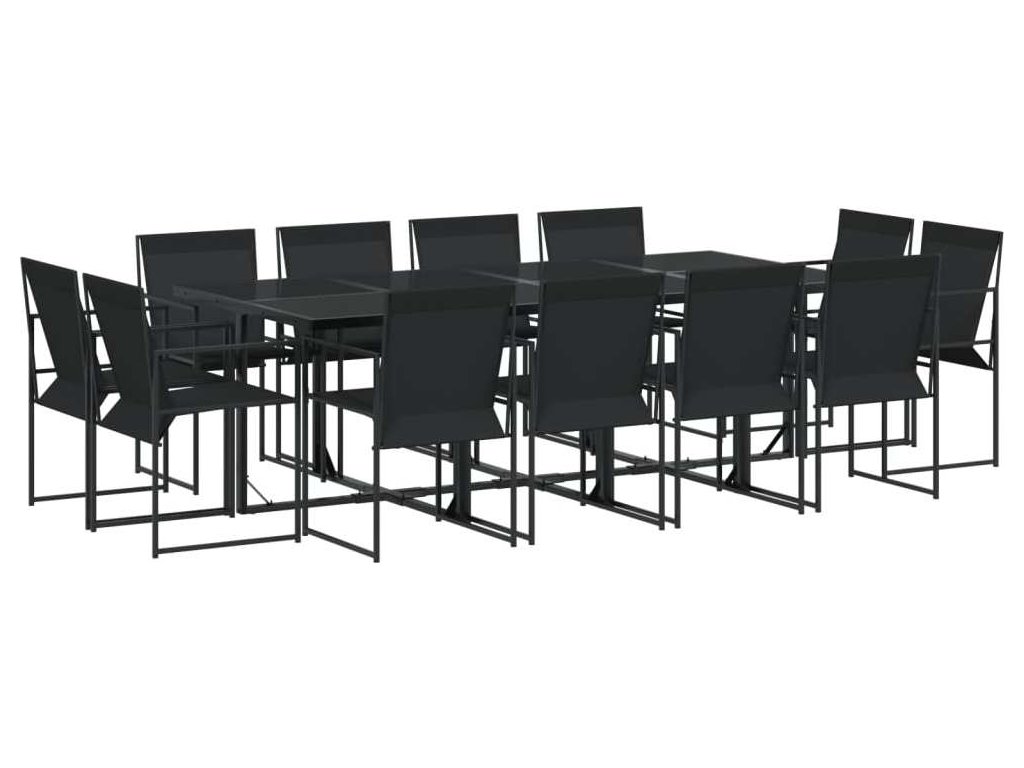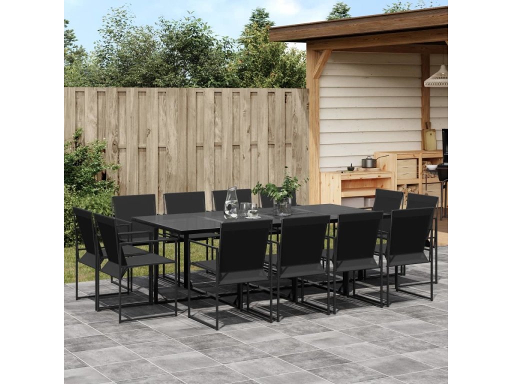 13dílný zahradní jídelní set černý textilen [3295125]