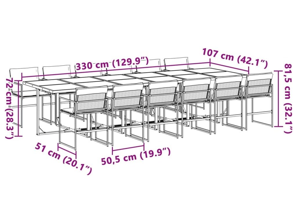 - Robustní a stabilní rám: Ocelový rám s práškovým nástřikem zajišťuje, že zahradní nábytek je pevný a stabilní pro každodenní venkovní použití.