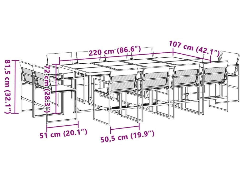 - Robustní a stabilní rám: Ocelový rám s práškovým nástřikem zajišťuje, že zahradní nábytek je pevný a stabilní pro každodenní venkovní použití.