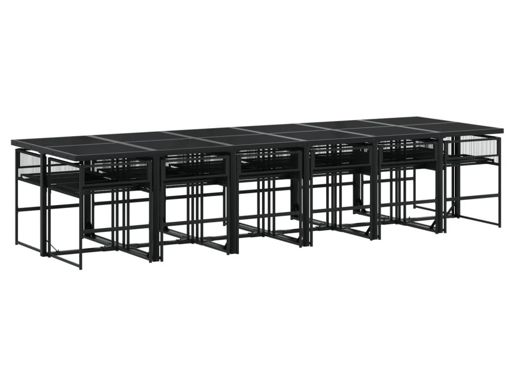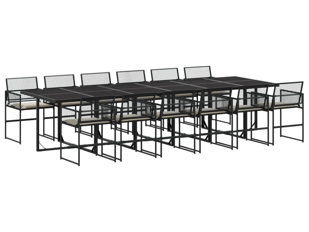 13dílný zahradní jídelní set s poduškami černý polyratan [3295012]