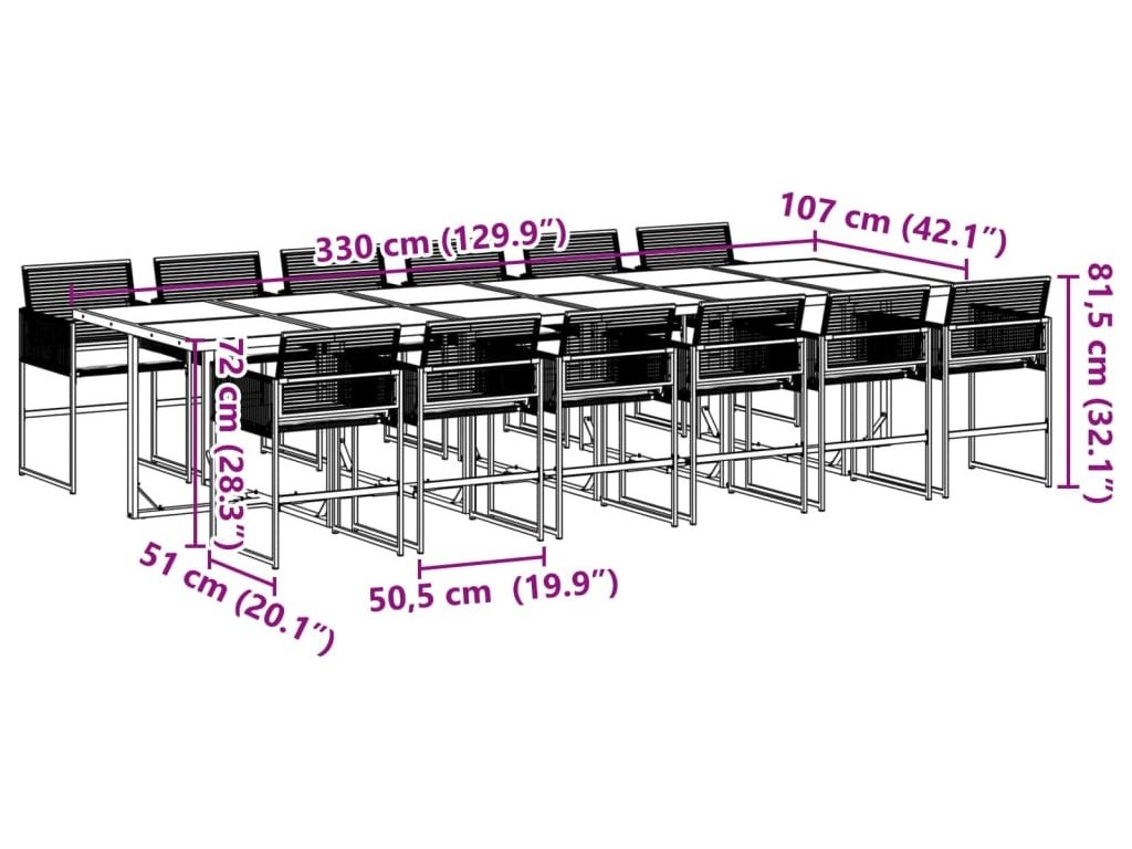 - Robustní a stabilní rám: Ocelový rám s práškovým nástřikem zajišťuje, že zahradní nábytek je pevný a stabilní pro každodenní venkovní použití.
