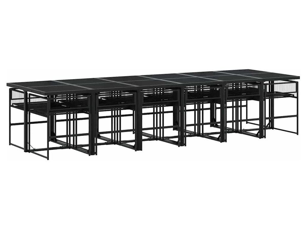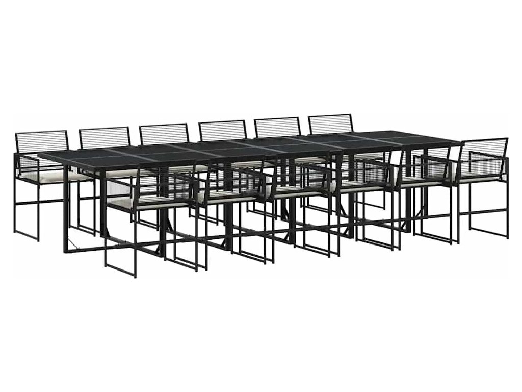 13dílný zahradní jídelní set s poduškami černý polyratan [3295027]
