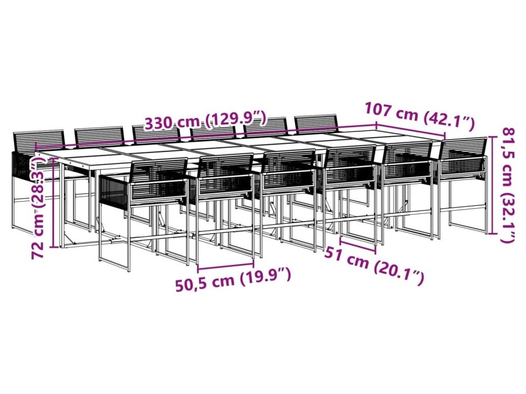 - Rozměry: 330 x 107 x 72 cm (D x Š x V)