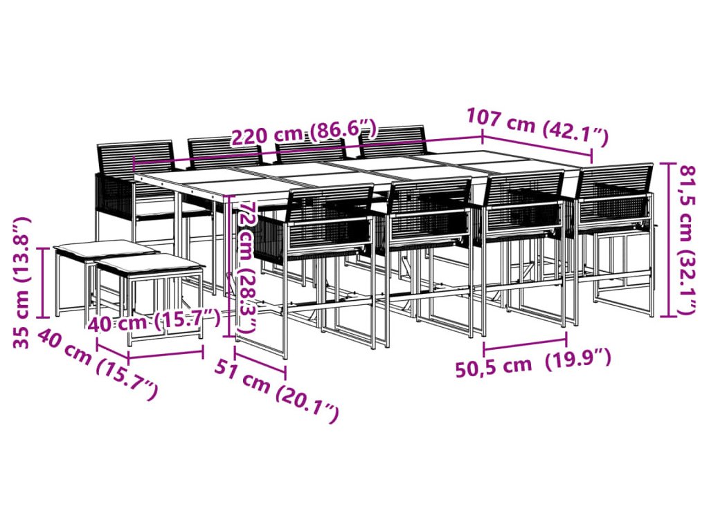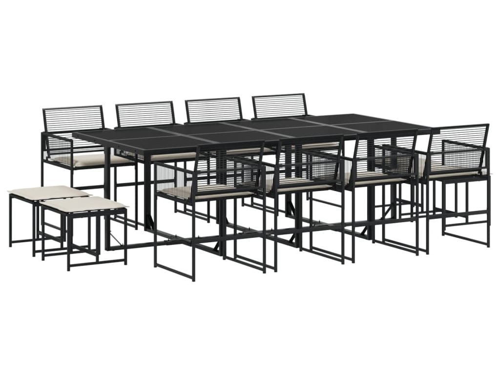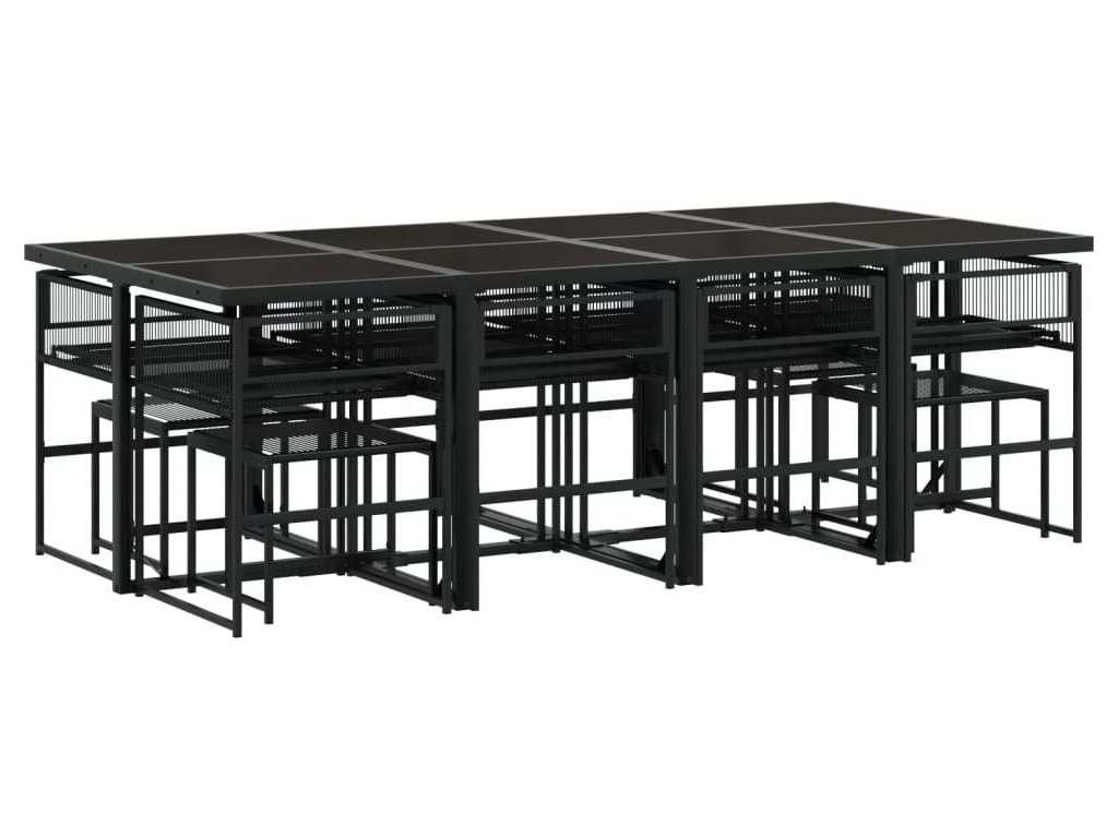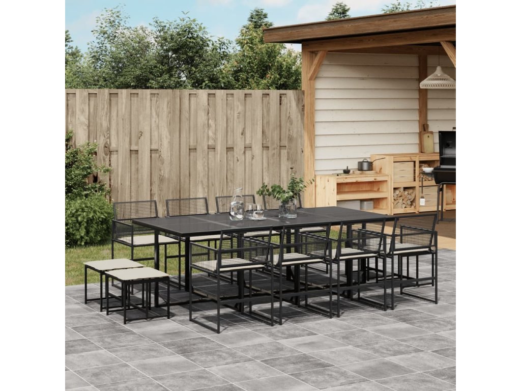 13dílný zahradní jídelní set s poduškami černý polyratan [3295030]