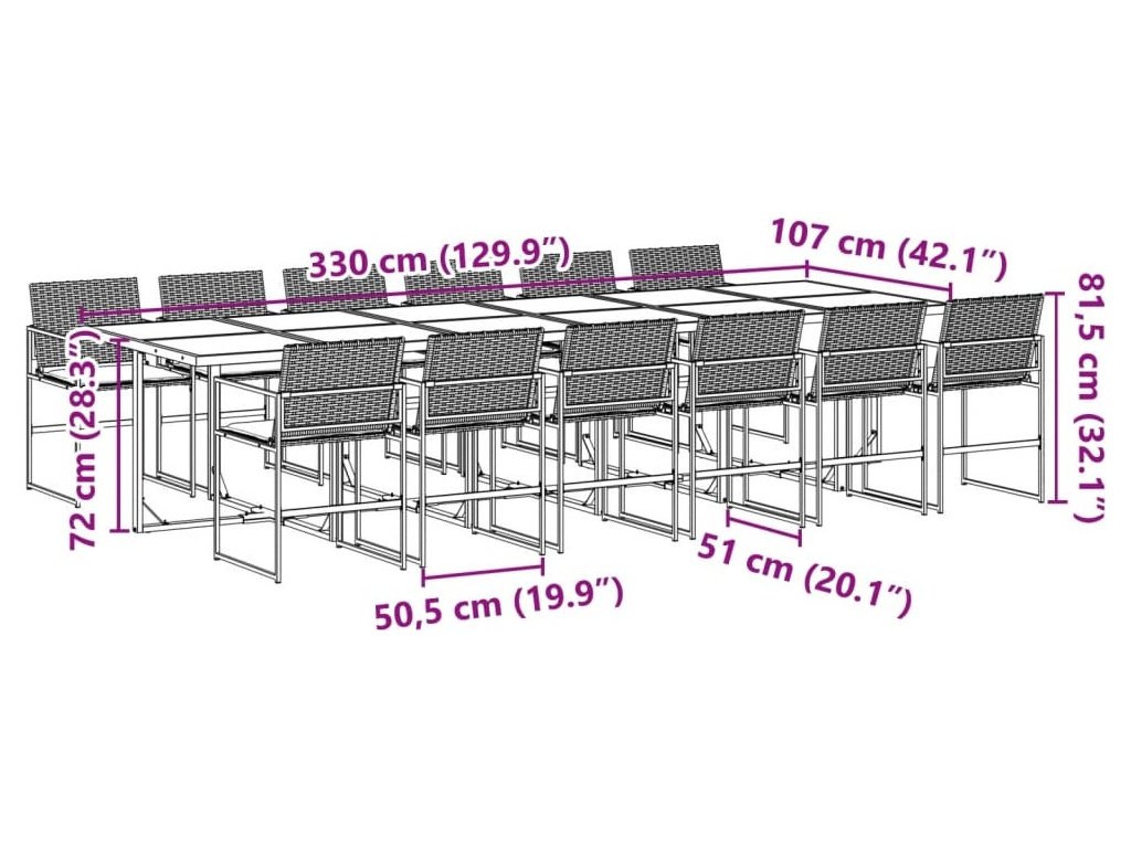 13dílný zahradní jídelní set s poduškami černý polyratan [3295062]