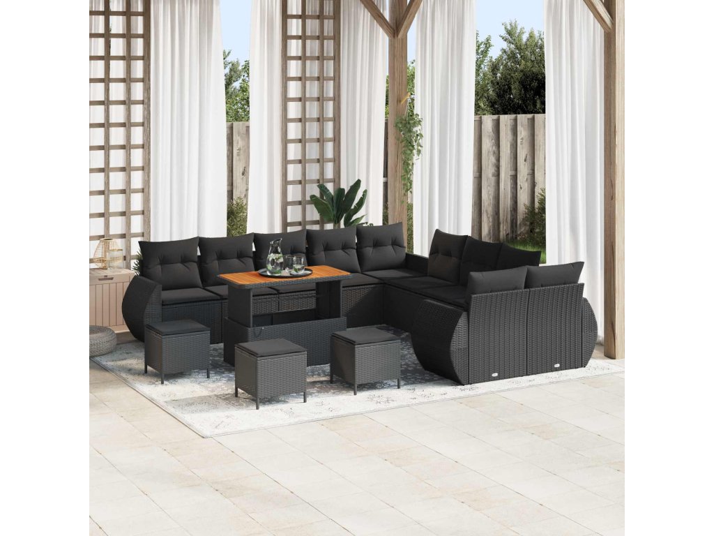 Sada zahradních pohovek s polštářem s úložištěm 14 pcs Černá [3363889]