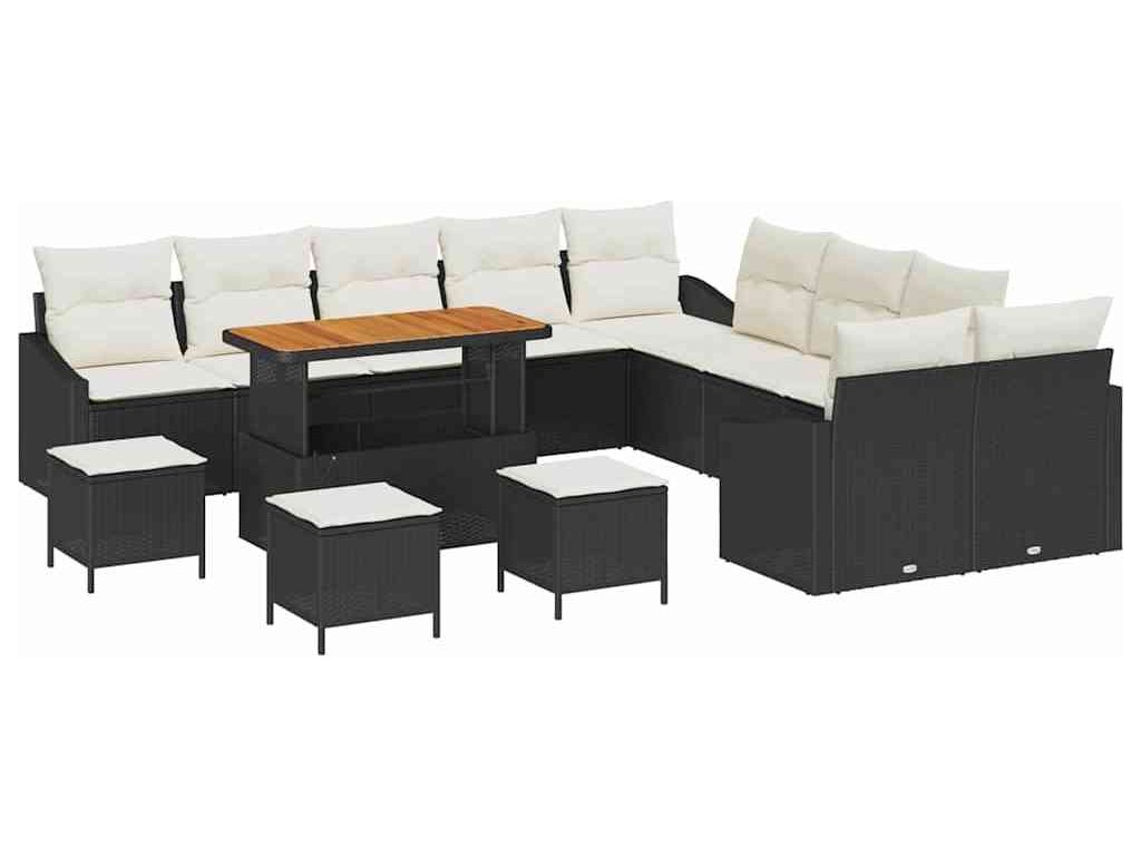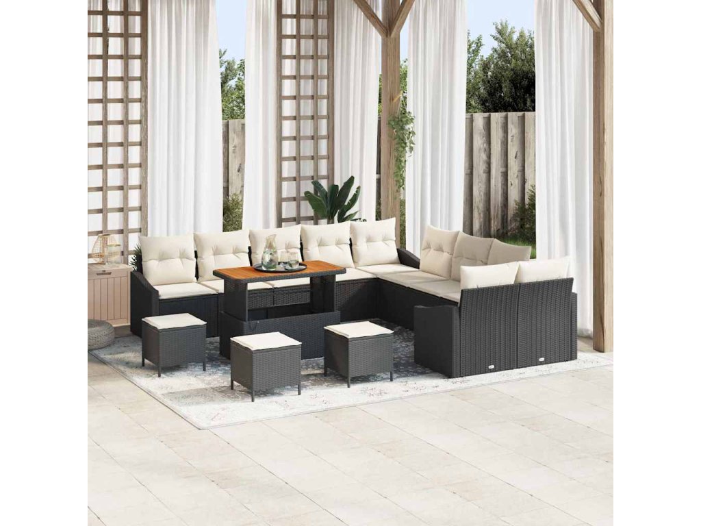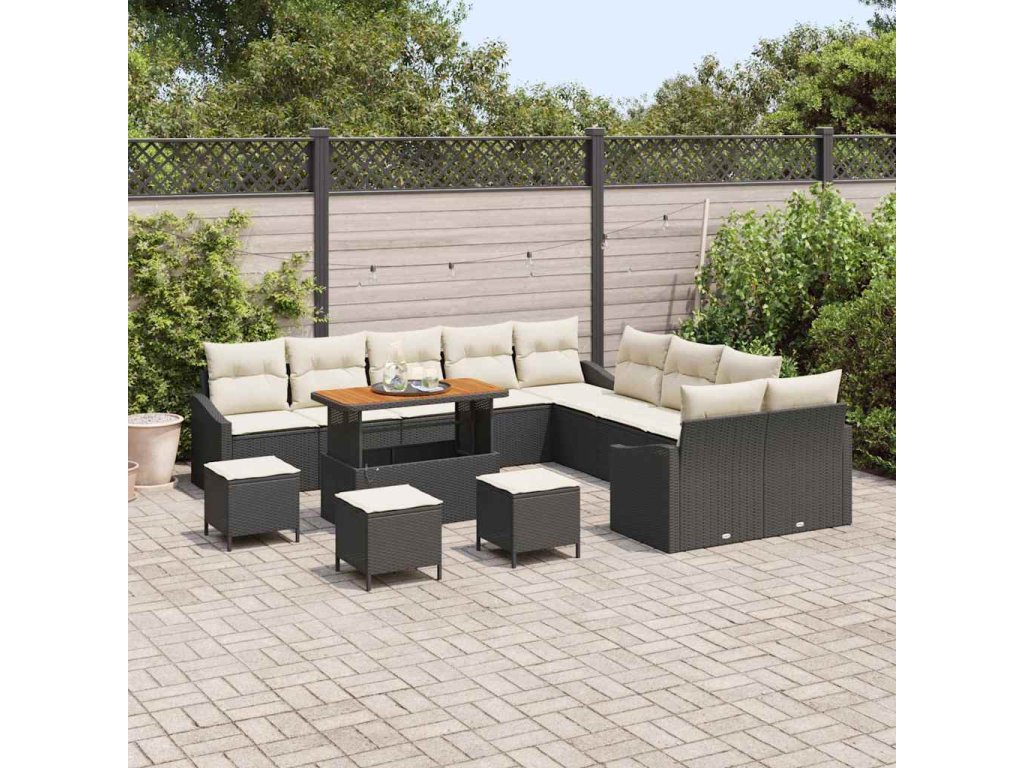 Sada zahradních pohovek s polštářem 13 pcs Černá a krémová [3364670]