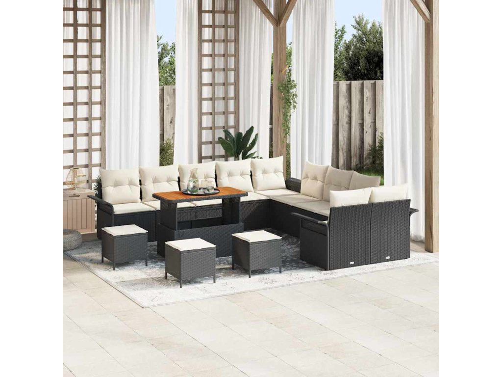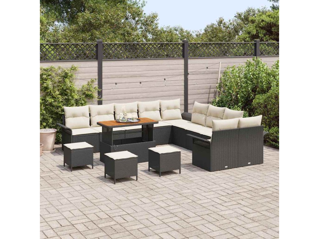 Sada zahradních pohovek s polštářem 14 pcs Černá a krémová [3364150]