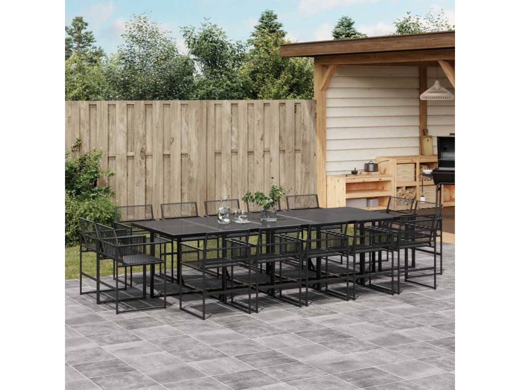 15dílný zahradní jídelní set černý polyratan [3295041]