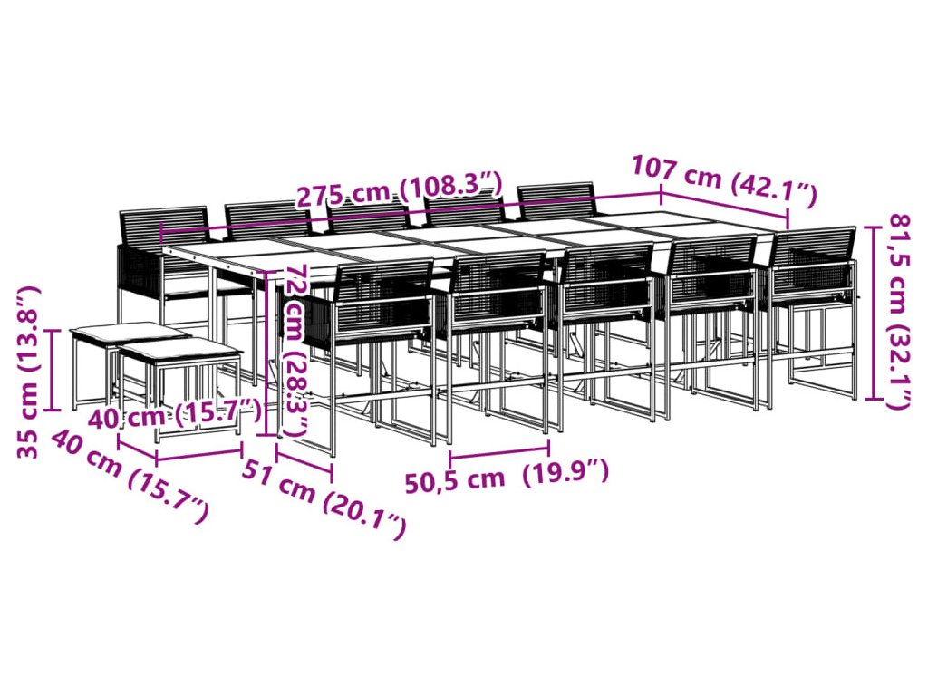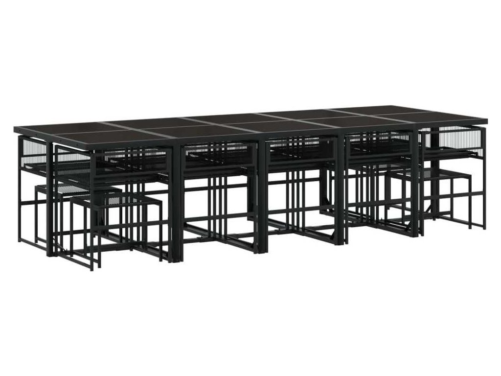 15dílný zahradní jídelní set s poduškami černý polyratan [3295031]
