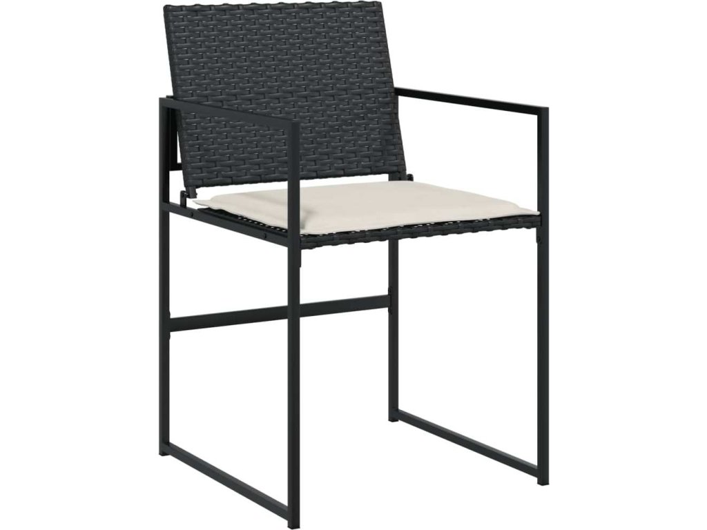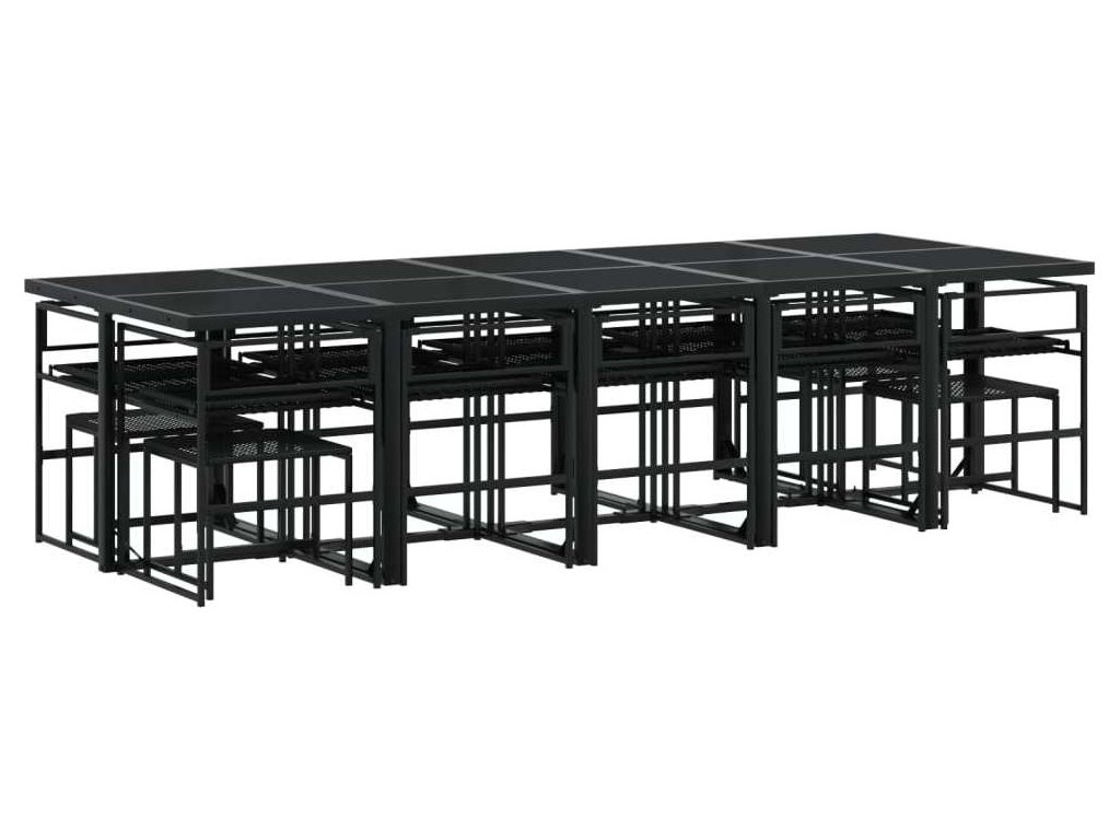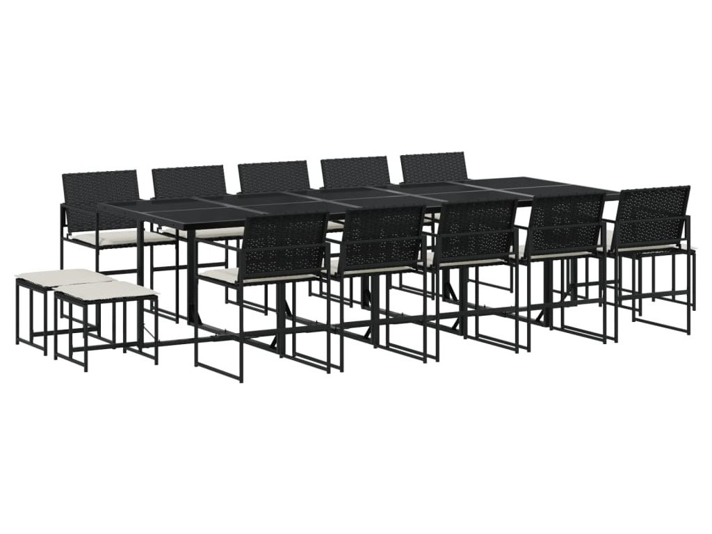 15dílný zahradní jídelní set s poduškami černý polyratan [3295071]