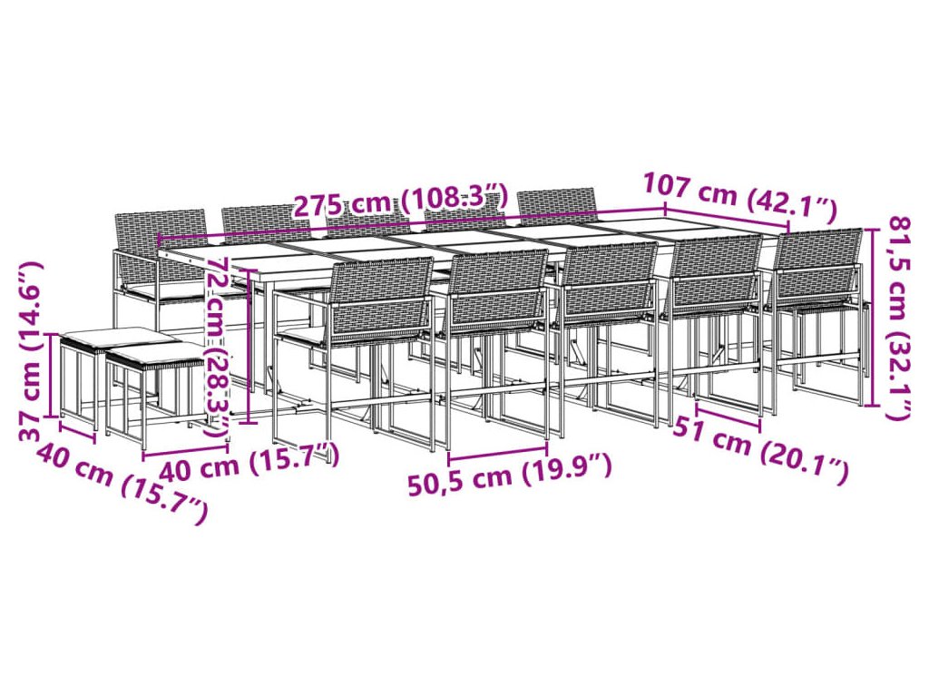 - Robustní a stabilní rám: Ocelový rám s práškovým nástřikem zajišťuje, že zahradní nábytek je pevný a stabilní pro každodenní venkovní použití.