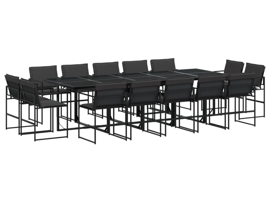 15dílný zahradní jídelní set s poduškami černý textilen [3295081]