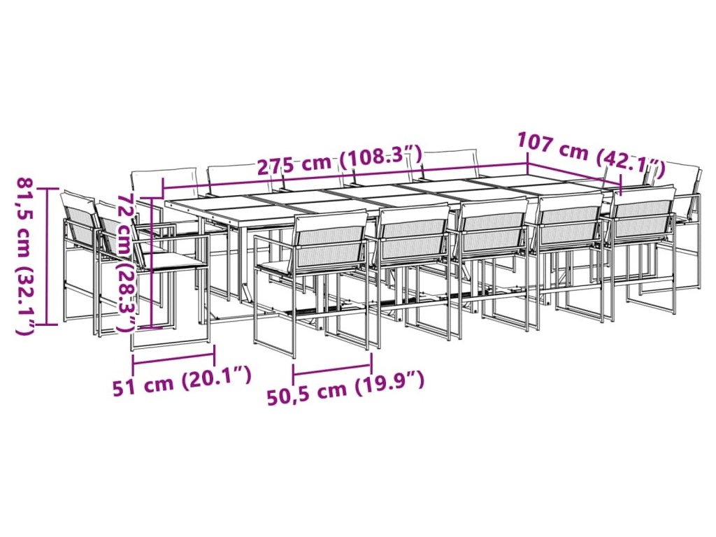 - Robustní a stabilní rám: Ocelový rám s práškovým nástřikem zajišťuje, že zahradní nábytek je pevný a stabilní pro každodenní venkovní použití.