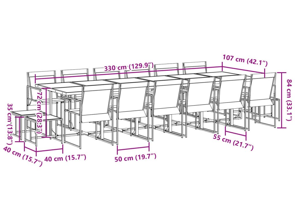 - Robustní a stabilní rám: Ocelový rám s práškovým nástřikem zajišťuje, že zahradní nábytek je pevný a stabilní pro každodenní venkovní použití.