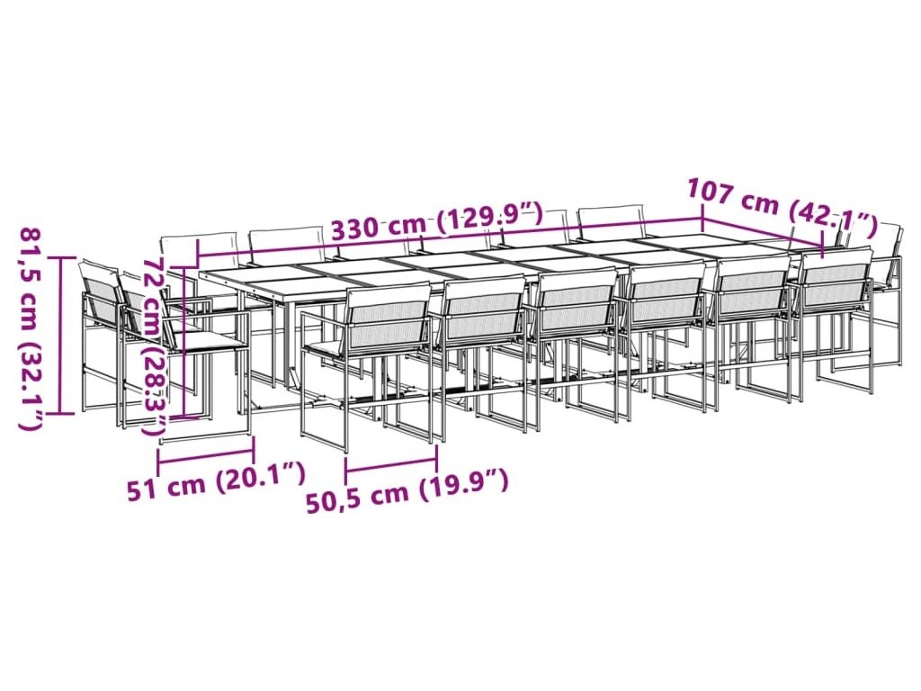- Robustní a stabilní rám: Ocelový rám s práškovým nástřikem zajišťuje, že zahradní nábytek je pevný a stabilní pro každodenní venkovní použití.