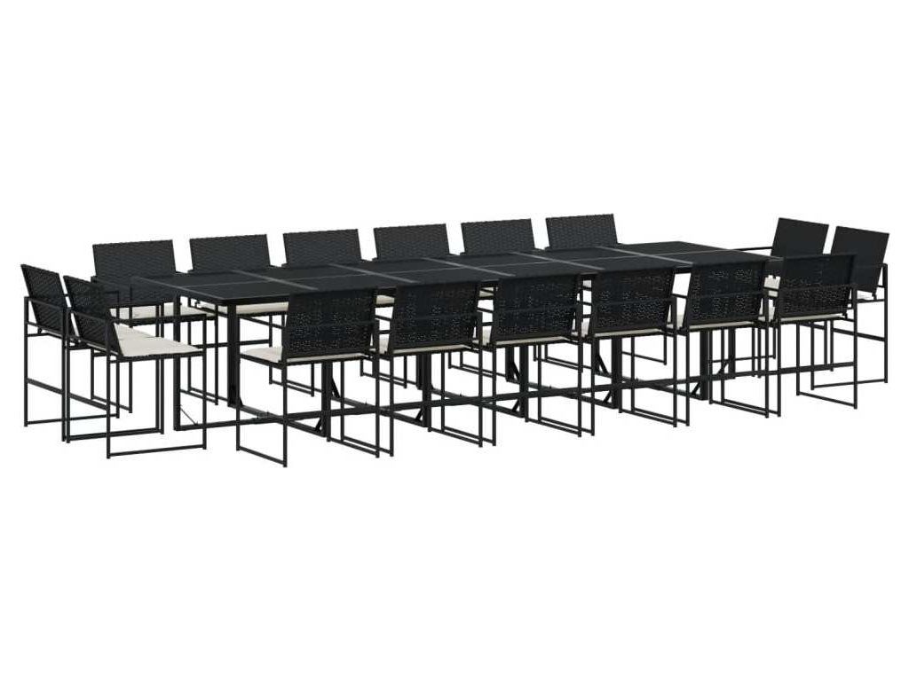 17dílný zahradní jídelní set s poduškami černý polyratan [3295067]