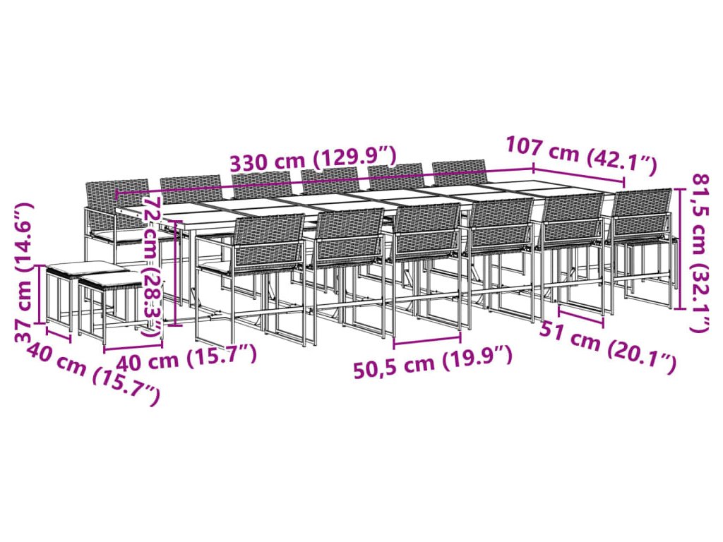 - Robustní a stabilní rám: Ocelový rám s práškovým nástřikem zajišťuje, že zahradní nábytek je pevný a stabilní pro každodenní venkovní použití.