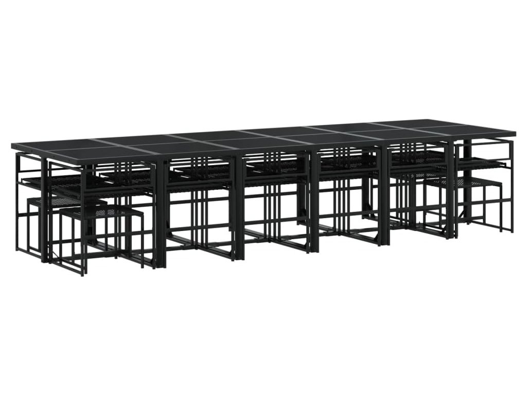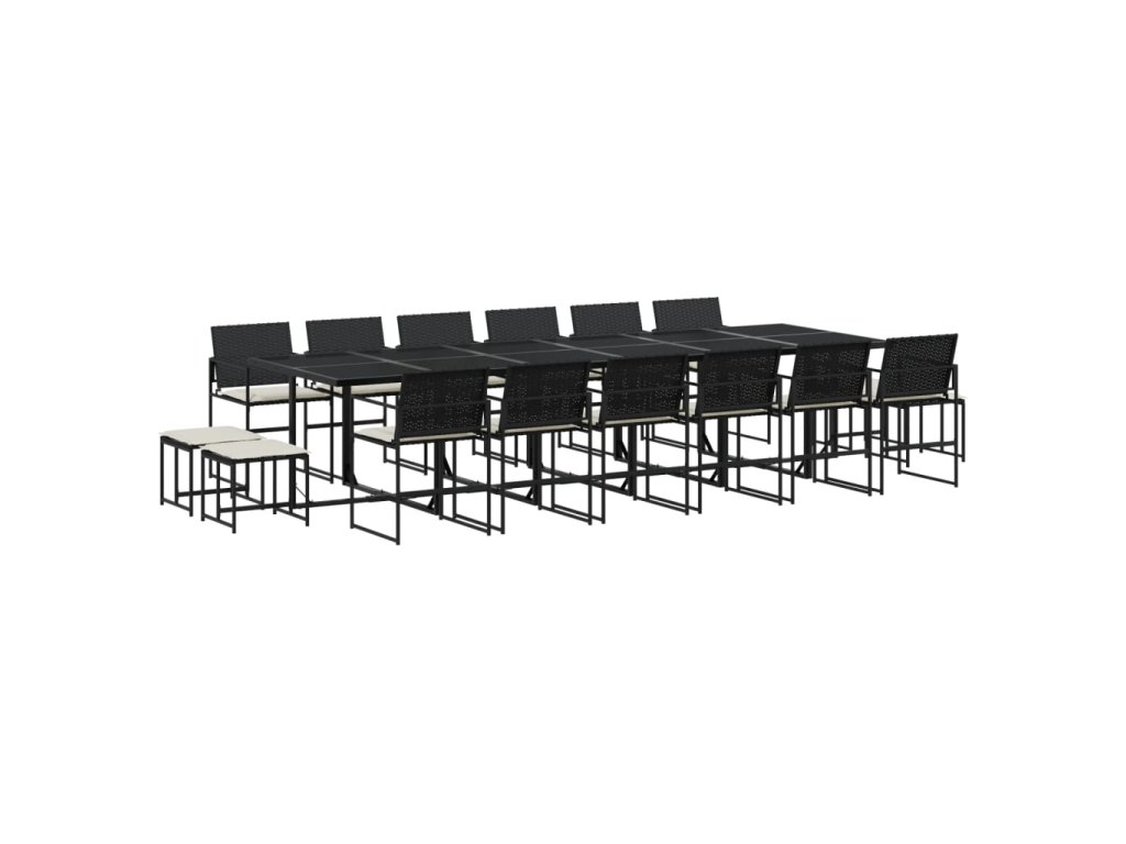 17dílný zahradní jídelní set s poduškami černý polyratan [3295072]