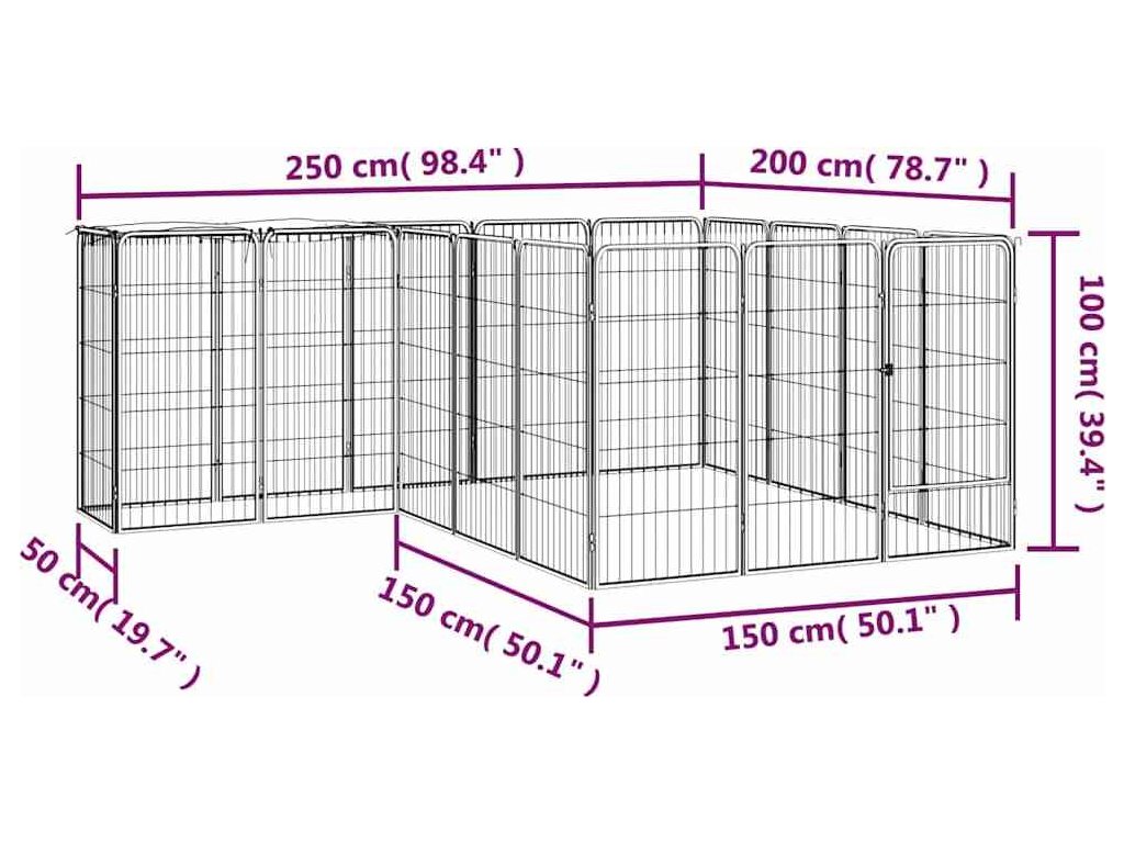 18panelová ohrádka pro psy černá 50 x 100 cm práškovaná ocel [3115950]