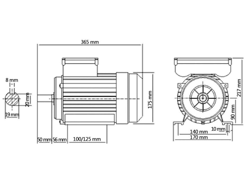 - Průměr hřídele: 19 mm