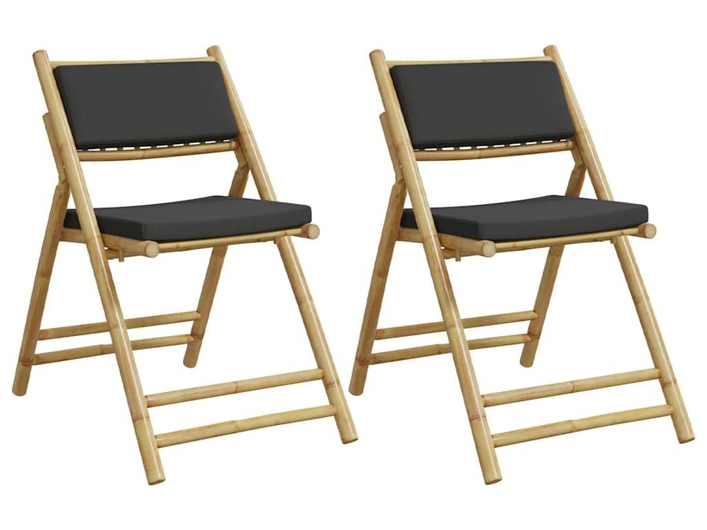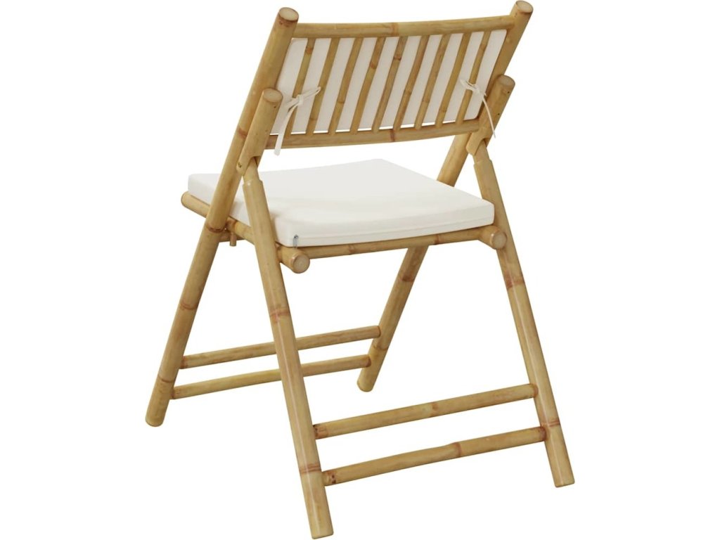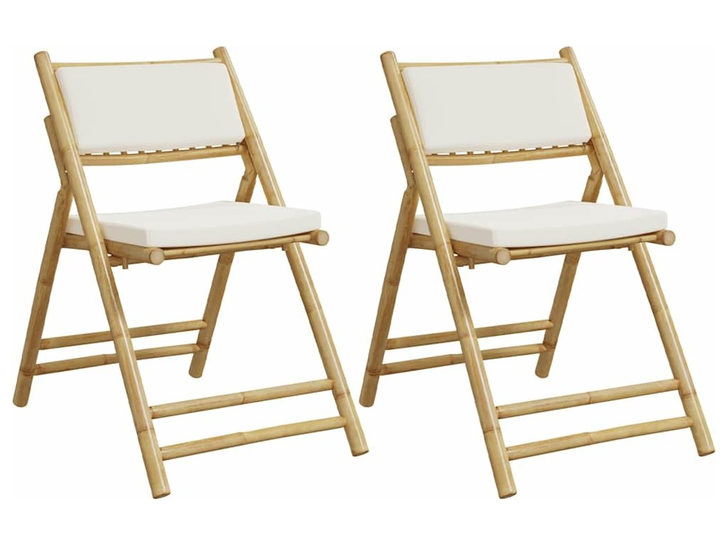 2 ks skládací bistro židle s krémově bílými poduškami bambus [365873]