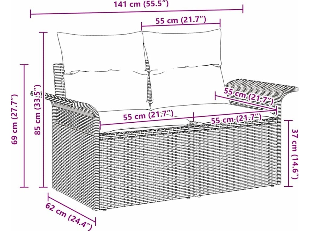 - 2 x Zahradní pohovka: 70,5 x 62 x 69 cm (D x Š x V)