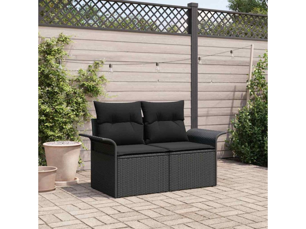 Zahradní sofa s polštářem Černá 141 x 62 x 69 cm polyratan [42006701]