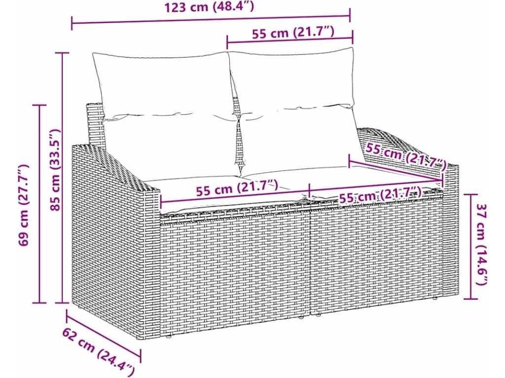 Zahradní sofa s polštářem 123 x 62 x 69 cm polyratan [42006783]