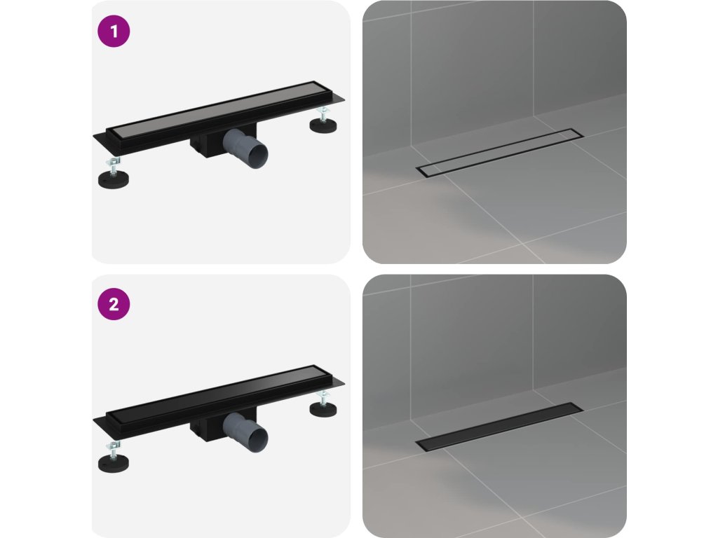 2 v 1 sprchový odtok Černá 60 cm Nerezová ocel 304 [42015944]