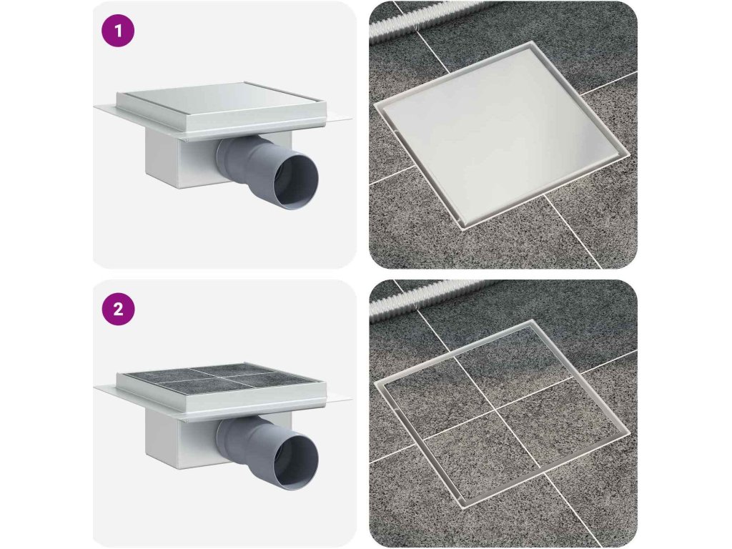 2 v 1 sprchový odtok Stříbrná 15 x 15 cm Nerezová ocel 304 [42015932]