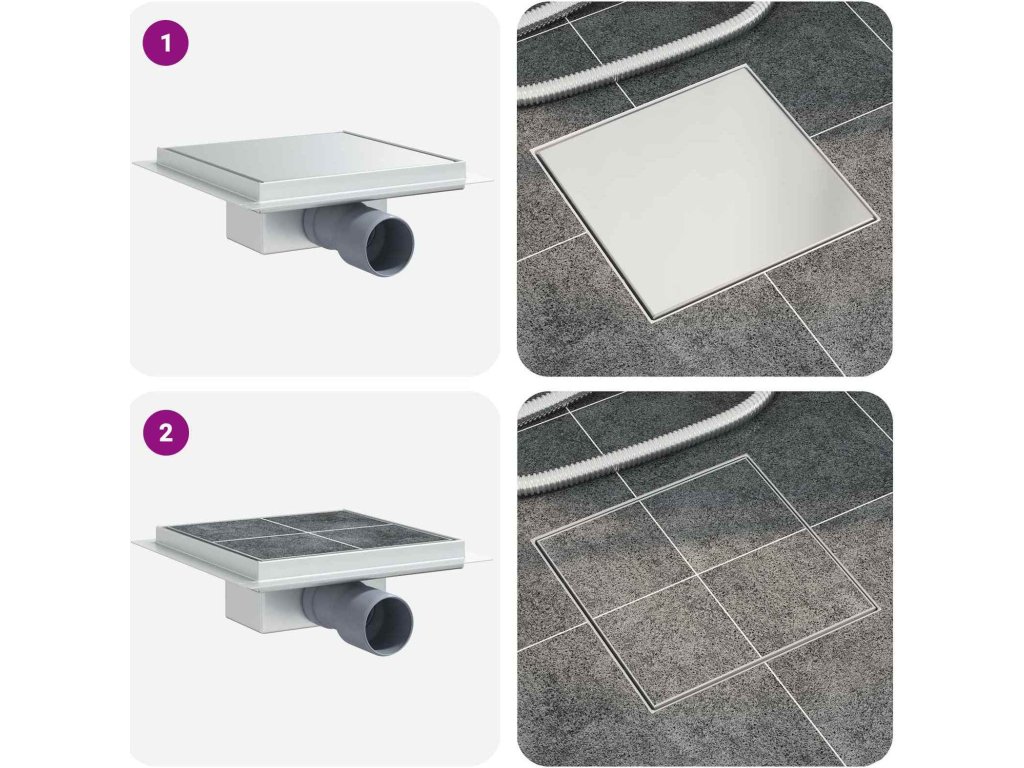 2 v 1 sprchový odtok Stříbrná 20 x 20 cm Nerezová ocel 304 [42015933]