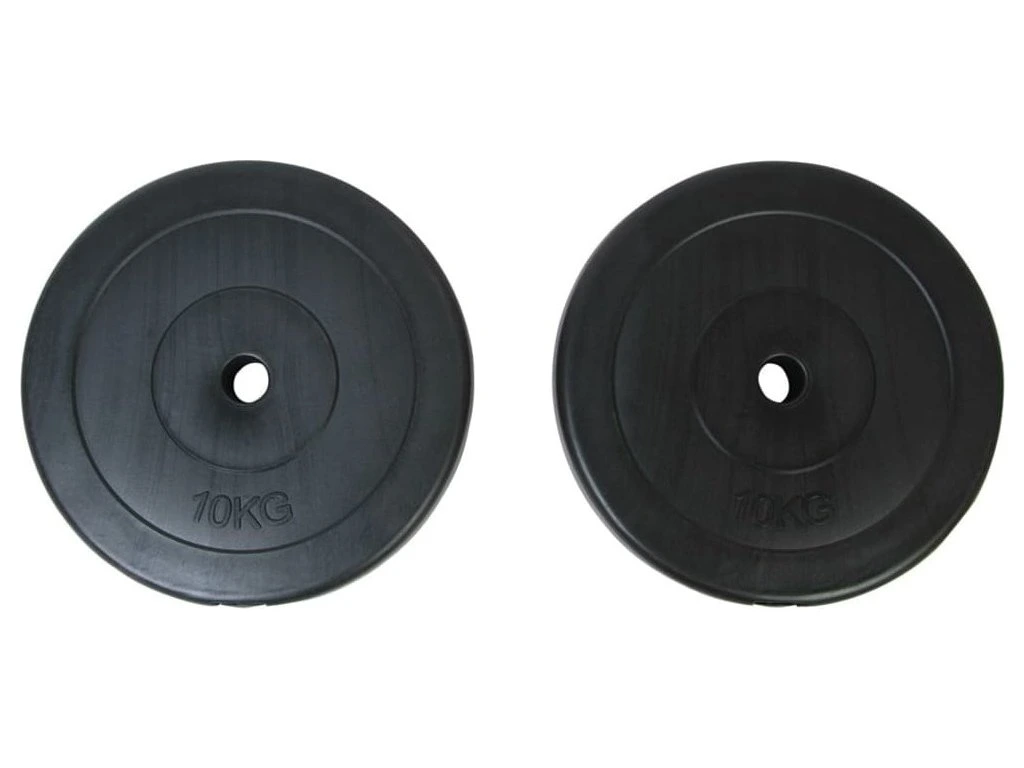 Tyto 2 kotouče jsou vhodné pro profesionální posilování doma. Každý kotouč má hmotnost 10 kg.Kotouče činky jsou pokryty silnou gumou, a tak při pokládání závaží nebouchá.