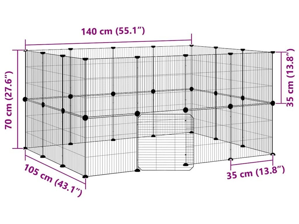 - Vlastní montáž: Ohrádka pro zvířata se skládá z několika částí, takže ji můžete sestavit do libovolného tvaru a velikosti.