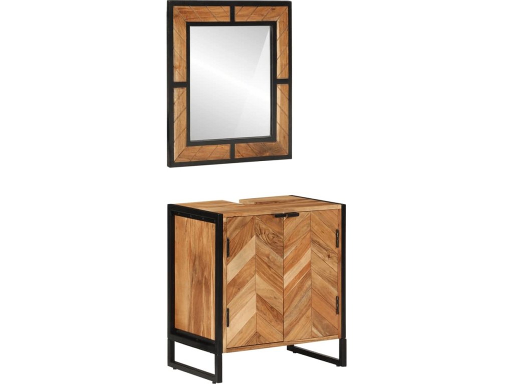 2dílná koupelnová sestava železo a masivní akáciové dřevo [3217119]
