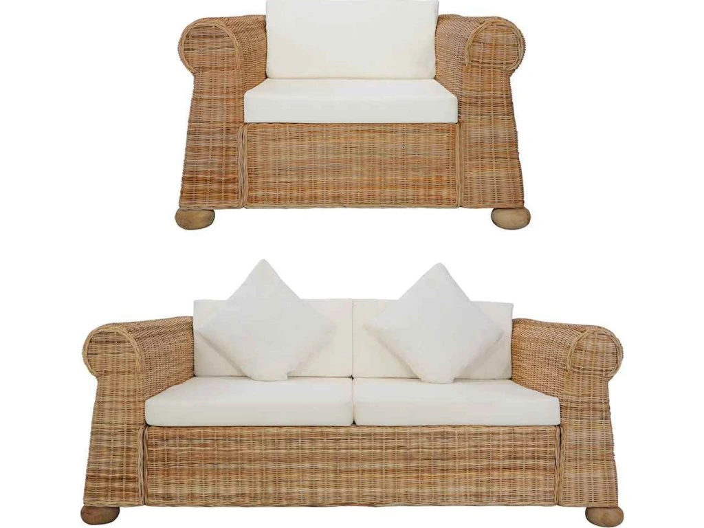 2dílná sedací souprava s poduškami přírodní ratan [278601]
