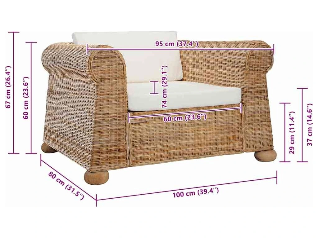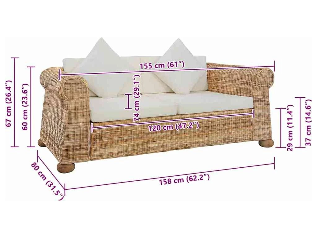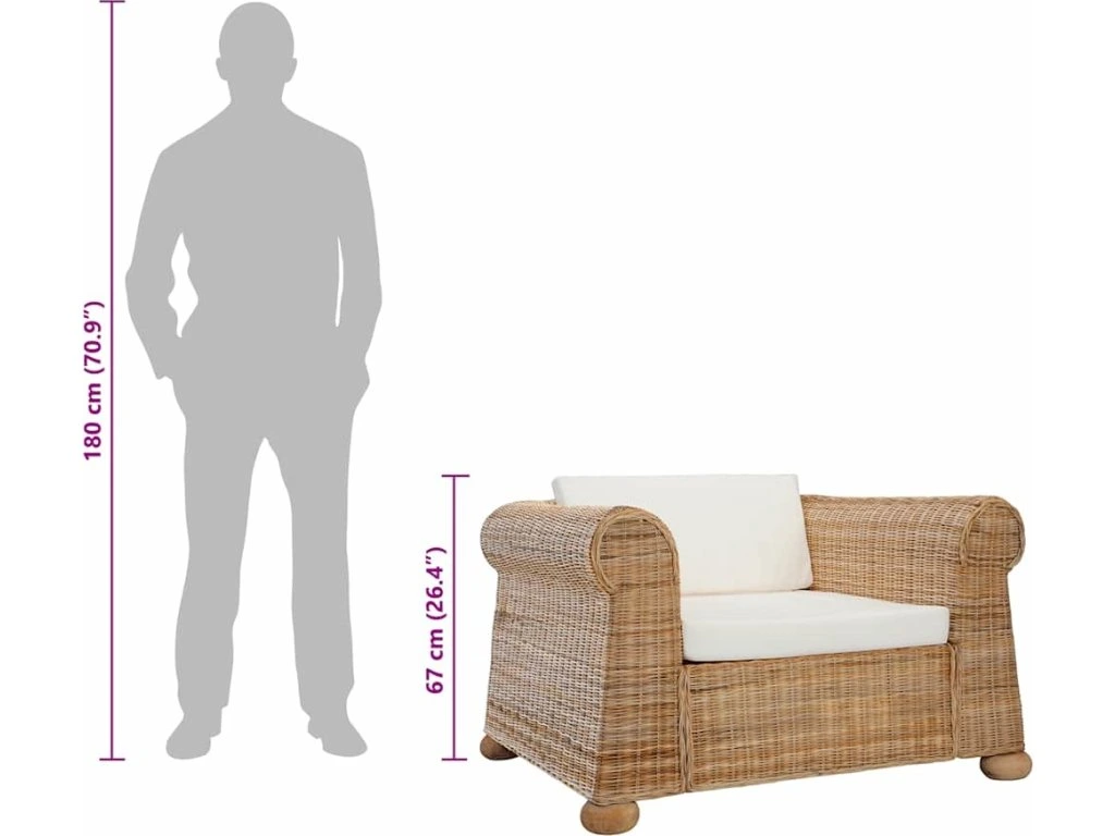 Vzhledem k originálnímu ratanovému materiálu se sestava snadno čistí, je mimořádně odolná a vhodná pro každodenní použití. Má robustní dřevěný rám, který je velmi odolný a stabilní. Silné podušky na sedák a opěradlo jsou mimořádně pohodlné a mají snímatelné potahy, takže se dají snadno prát. Široké područky vám navíc zajistí pohodlí při sezení.